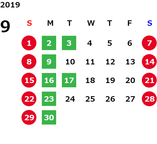 営業日カレンダー