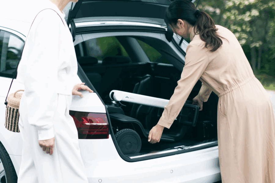 工具なしで、本体を3つ(バスケット、バッテリー含めて5つ)に分解可能です。「お出かけ先で乗りたい」「いざというときに持ち運びたい」、そんな希望にも応えます。